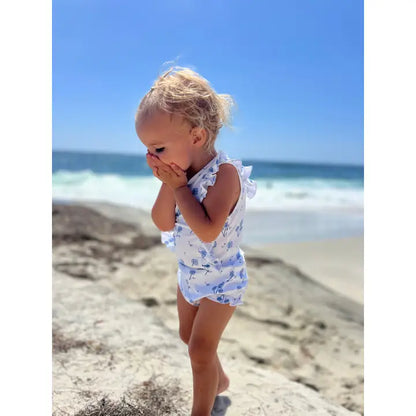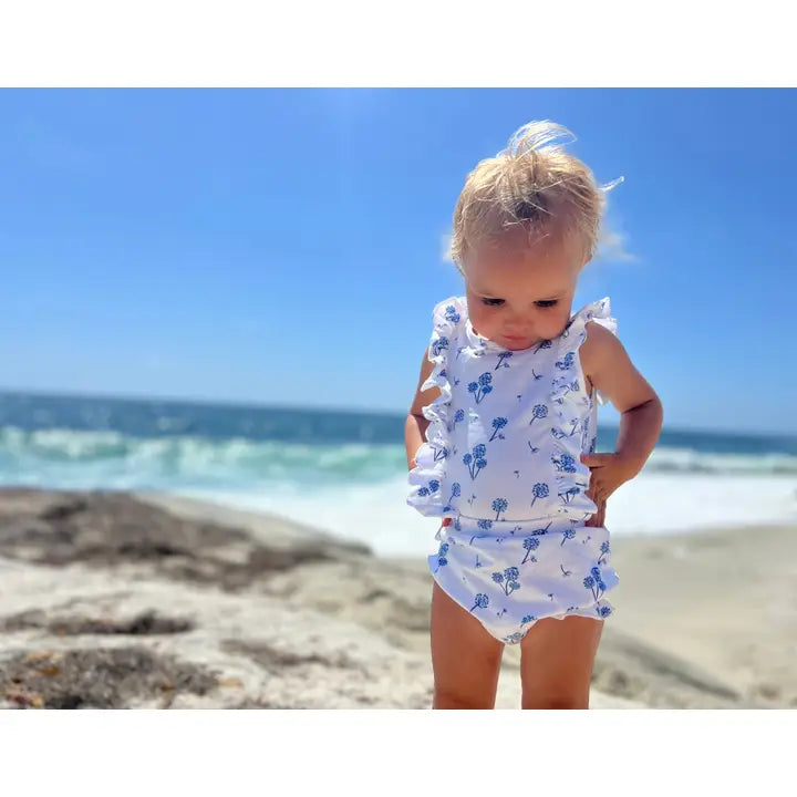 The Aralyn bloomer is the perfect pairing for our Lark onesie, crafted in the same charming print for a coordinated look. With its comfortable fit and playful style, it’s an adorable addition to any little one’s wardrobe.