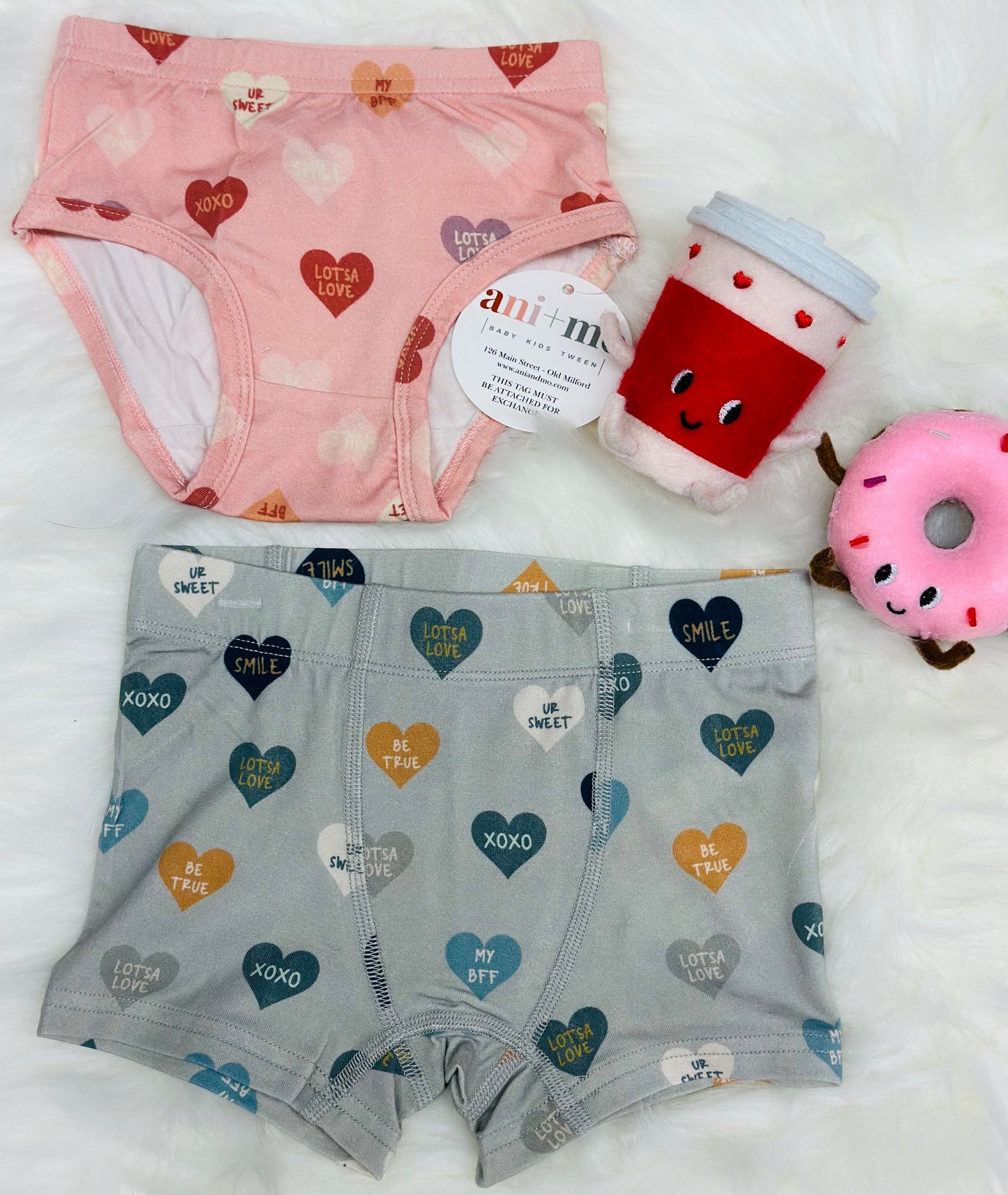babysprouts underwear are fitted with their bamboo jersey making them comfortable and the favorite new style to wear around the house! Celebrate Valentine's Day with these cute prints that come in boxer briefs or girl's briefs. All boxers and briefs are Final Sale and cannot be returned.