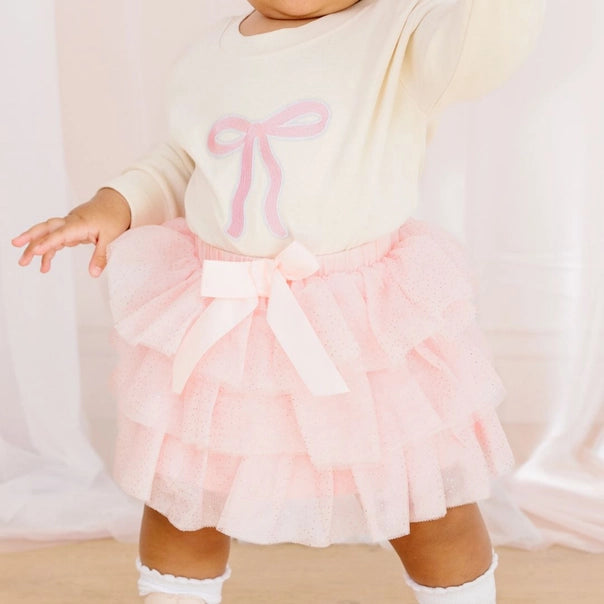 This long sleeve romper is a cute and trendy romper for babies inspired by the latest bow trend!
