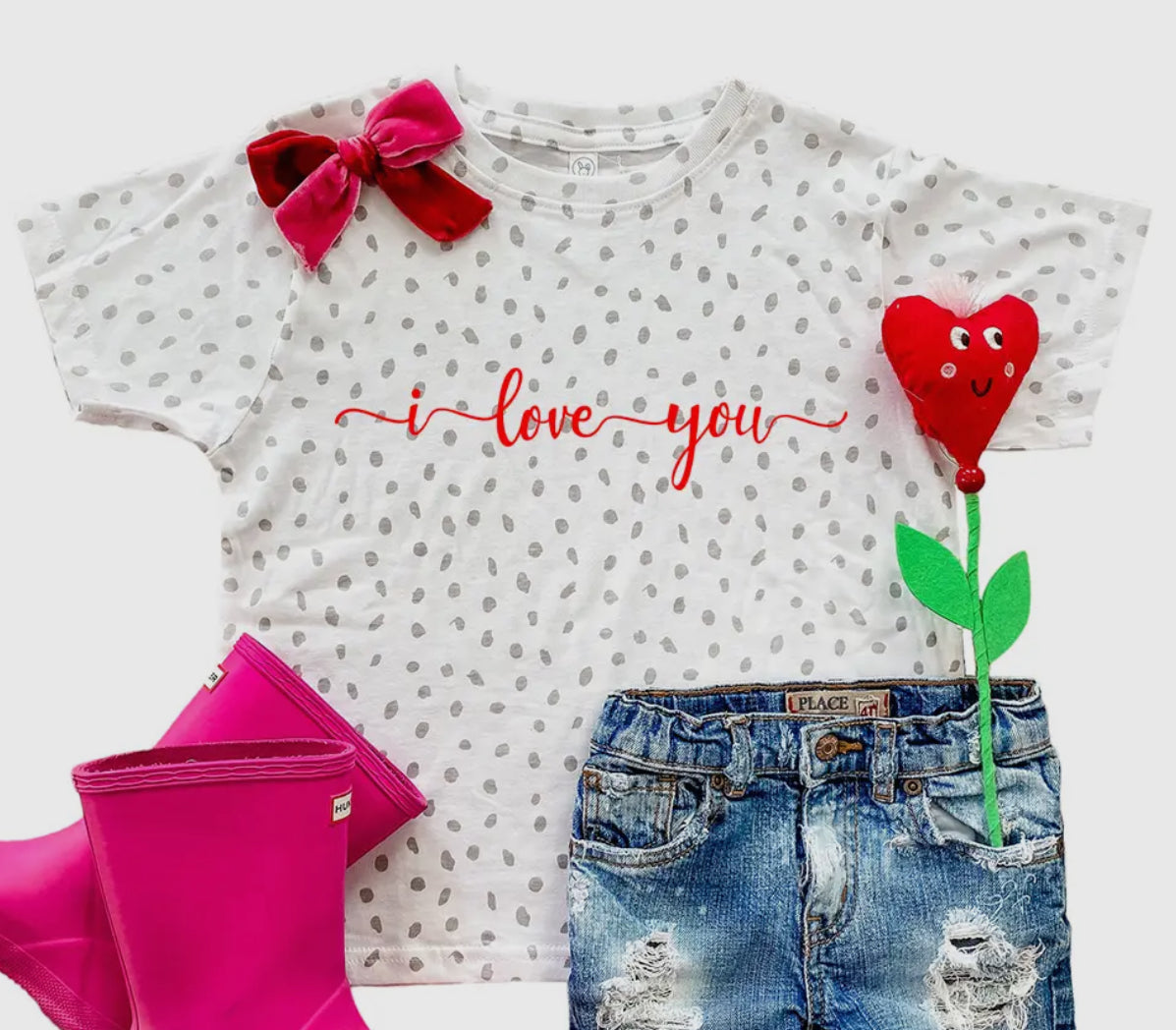 Celebrate Valentine's Day with our I Love You Script bodysuit and tee. With sizes from 12 months to 7, dress those littles in matching shirts and head out for a fun family day!