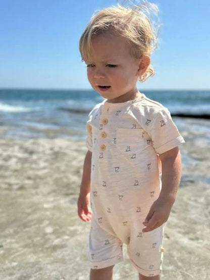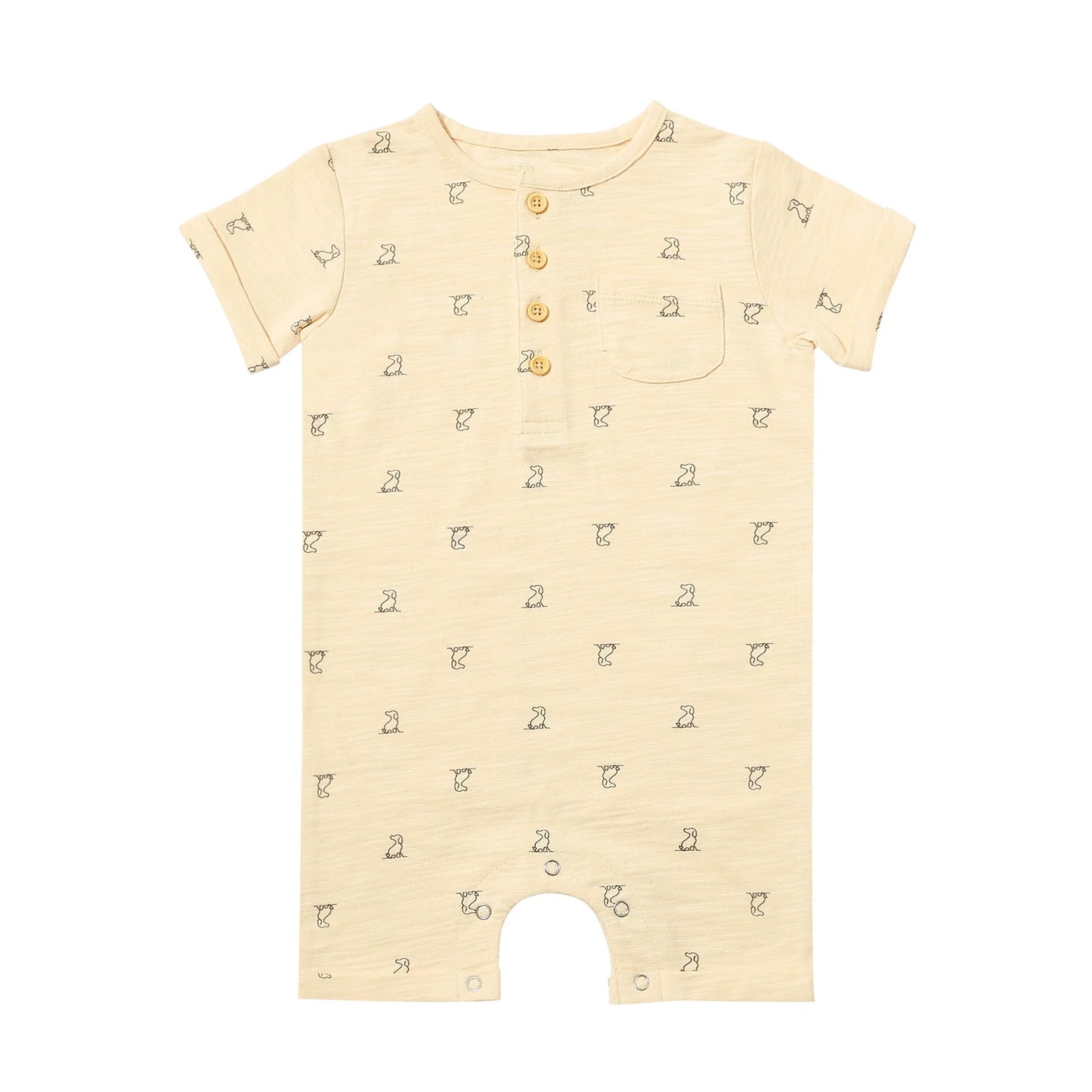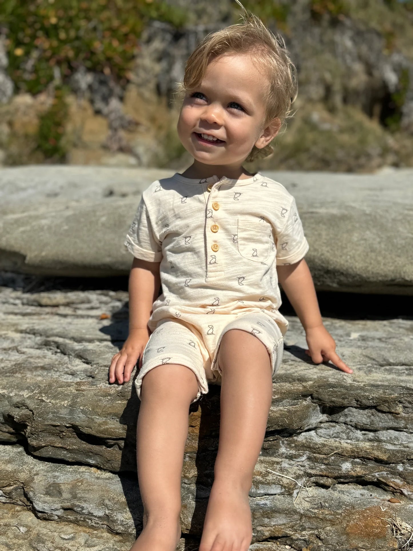 A stylish and comfortable one-piece jersey cotton outfit that combines a soft, neutral base with our famous Henry the dog print. The cream colour serves as a versatile backdrop, making it easy to pair with various accessories and footwear. Easy wear for all day comfort.