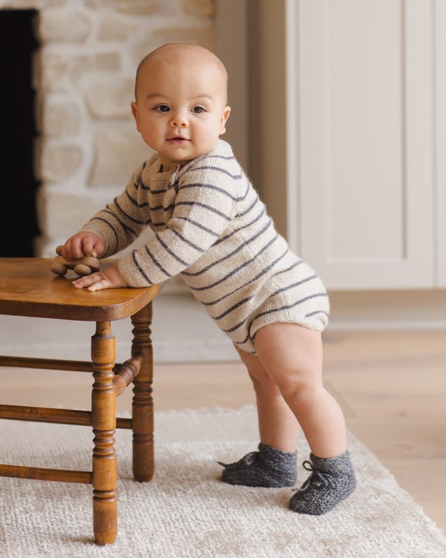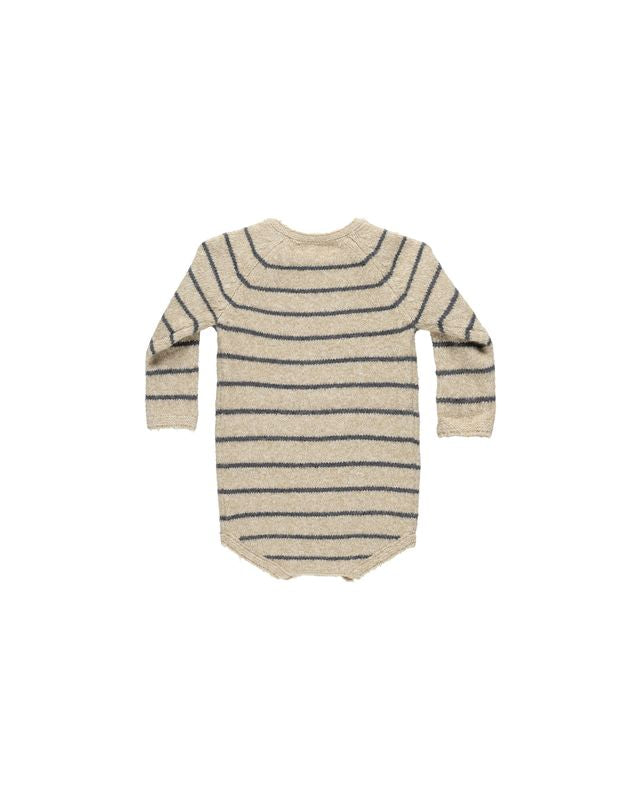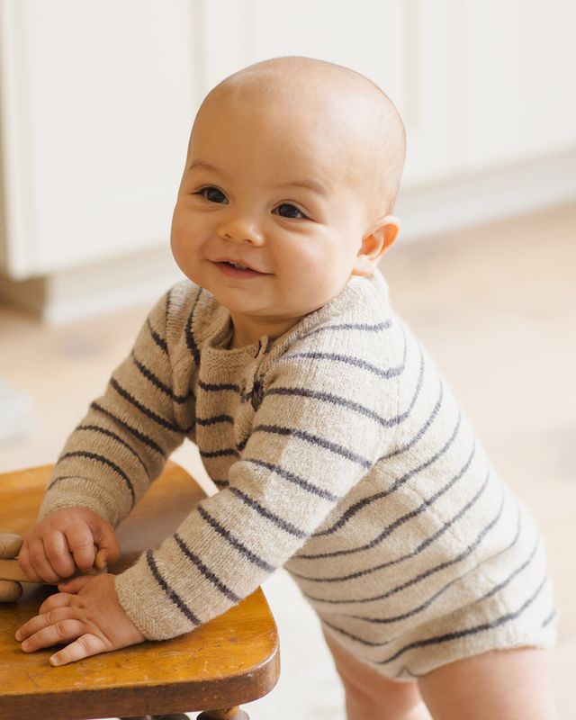 The Riggens Romper is a one piece wonder for the chilly days ahead. Classic stripes, two buttons along the neck line, raglan style sleeves, and button bottom closure create a fit that your littles will love.