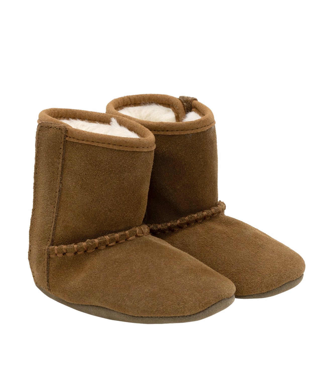 Meet the Tyler Soft Sole Boots in Camel, a versatile suede baby boot lined with ivory faux fur for added warmth and comfort. An easy-on velcro closure runs along the outer side of each boot, so they slide on and off without a fuss. With a durable construction and slip-resistant, flexible suede sole, these suede baby boots are sure to be a staple in your little one's fall and winter wardrobe.