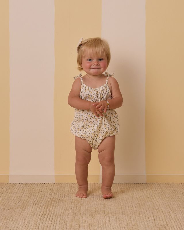 Made from soft cotton jersey, our Nala Romper has the sweetest bow straps, and bottom snaps for easy changes.