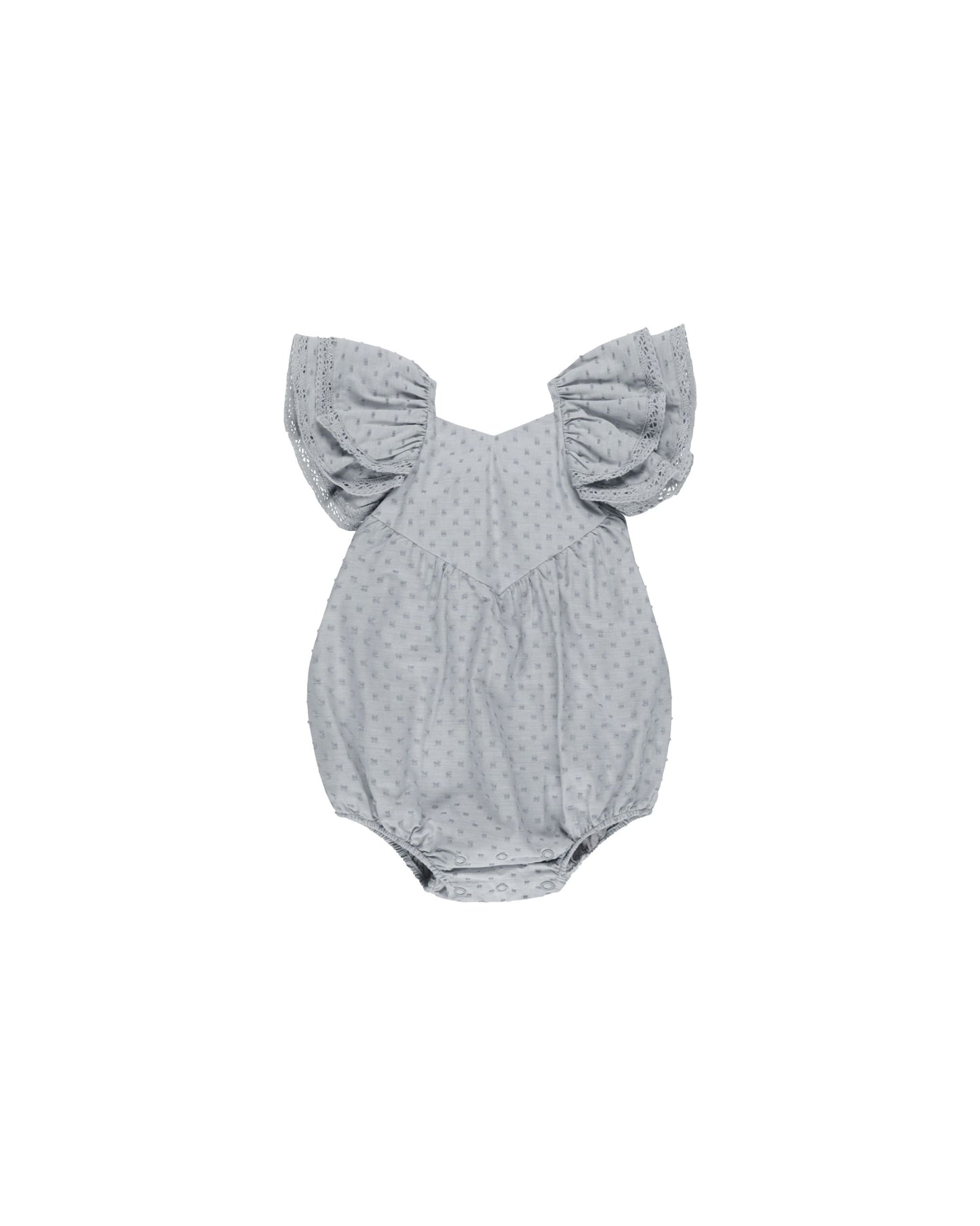 Get ready for fun with the Rylee + Cru Roxy Romper! The darling dusty blue color paired with whimsical details make this romper the perfect choice for any playful occasion. Stay cute and comfortable all day long.
