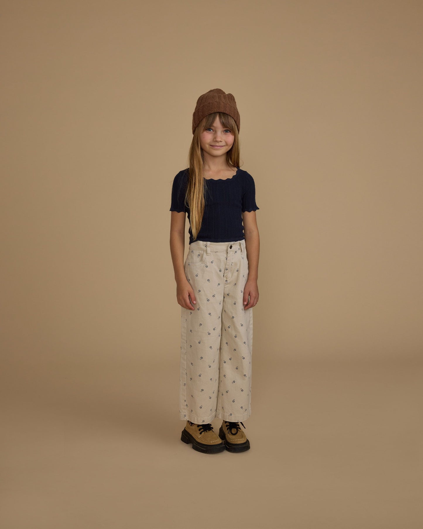 The Rylee + Cru Scalloped Tee will be your versatile staple this fall, crafted from pointelle knit fabric and adorned with scalloped sleeves and neckline.