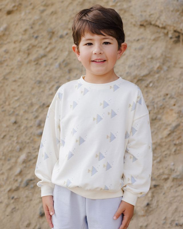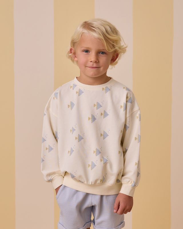 Featuring our 'angel fish' print on our 'ivory' hue. This cute minimalist design is perfect for your little adventurers.