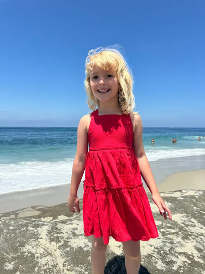The Sloane dress is red is pure perfection, ready for sunshine and sea breezes. With its playful design and twirl-worthy silhouette, this dress is the perfect blend of preppy charm and carefree fun. Whether it’s a beach day, a boat outing, or a summer party, the Sloane dress brings classic style with a lively twist.