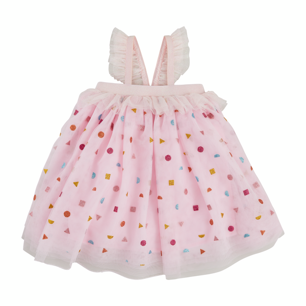 Sparkle Toddler Birthday Dress is a delightful choice for your little one's special day. This enchanting dress features a lined glitter mesh fabric that adds a touch of magic and sparkle, making it perfect for birthday celebrations or any festive occasion. The lurex elastic shoulder straps provide a comfortable and secure fit, allowing your child to move freely and enjoy the festivities. This dress is crafted from 100% polyester, ensuring durability and easy care. Let your toddler shine and feel like a star in this charming and stylish dress.