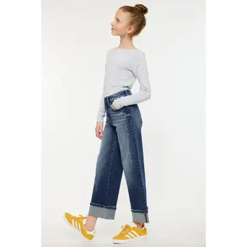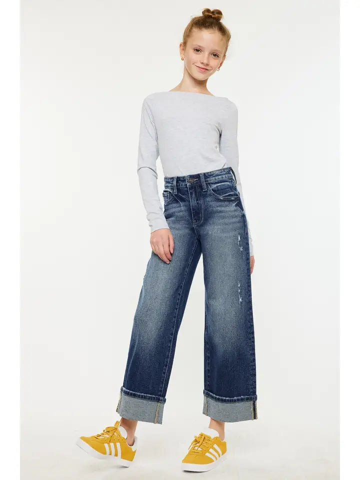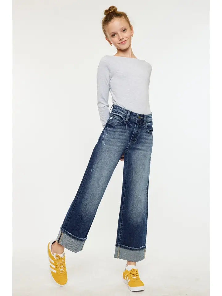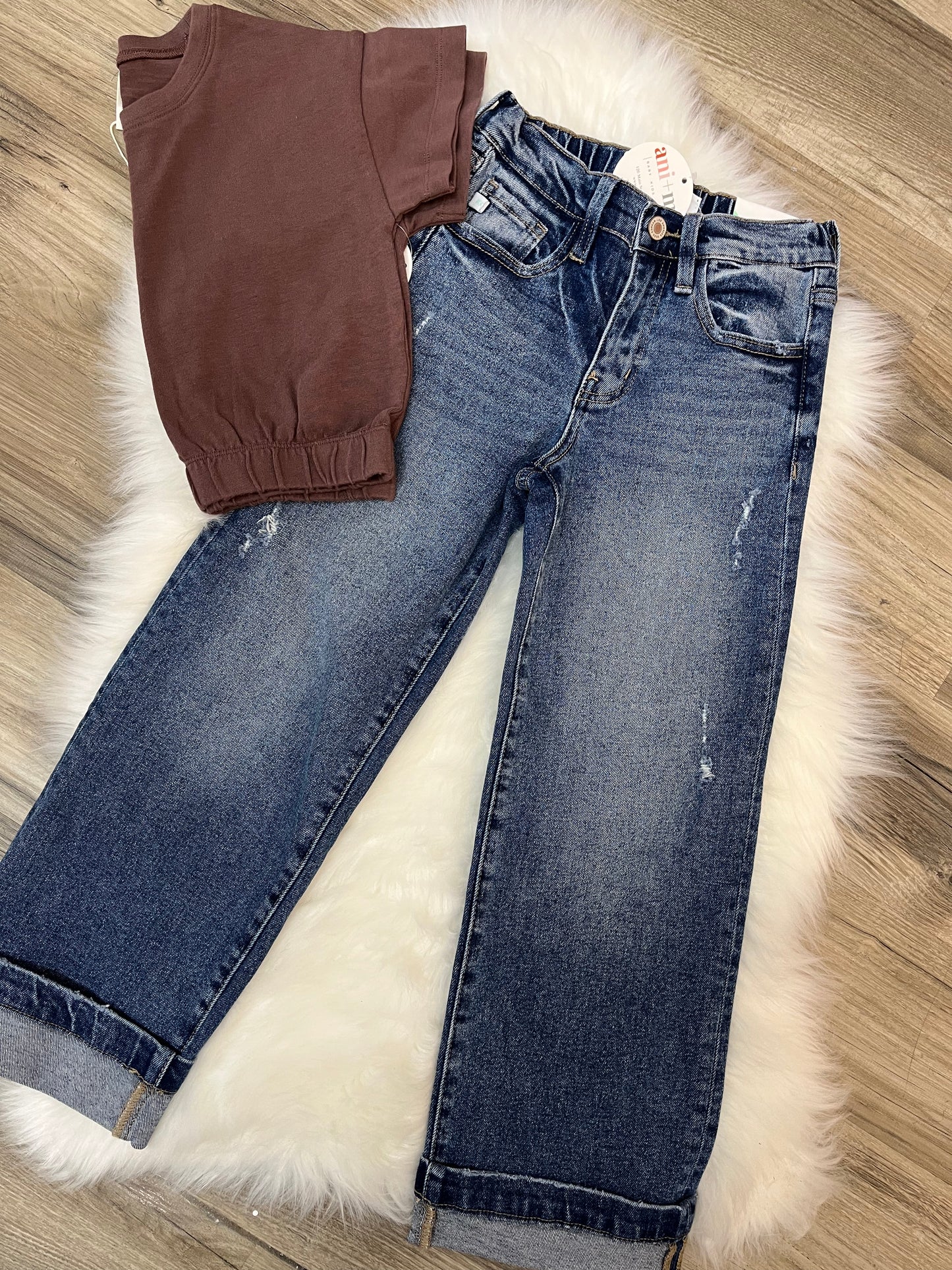 Features a dark wash with comfort stretch, allowing your little one to move freely. They come with a 1 1/2" elastic waistband, an open side seam, and a regular hem with a 3" cuff.